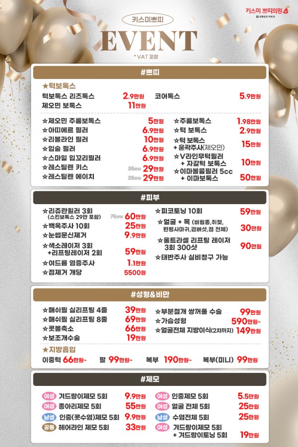 키스미쁘띠의원 이벤트 안내 페이지 정보 작성자최고관리자 조회1,651회 댓글0건 관련링크 이전글 8월 이벤트 안내 다음글 7월 헤택 목록 본문 키스미쁘띠의원 이벤트 안내 댓글 목록 등록된 댓글이 없습니다. 댓글등록 이전글 8월 이벤트 안내 다음글 7월 헤택 목록